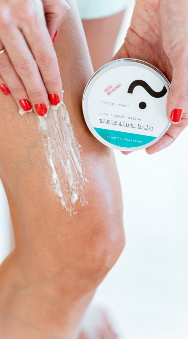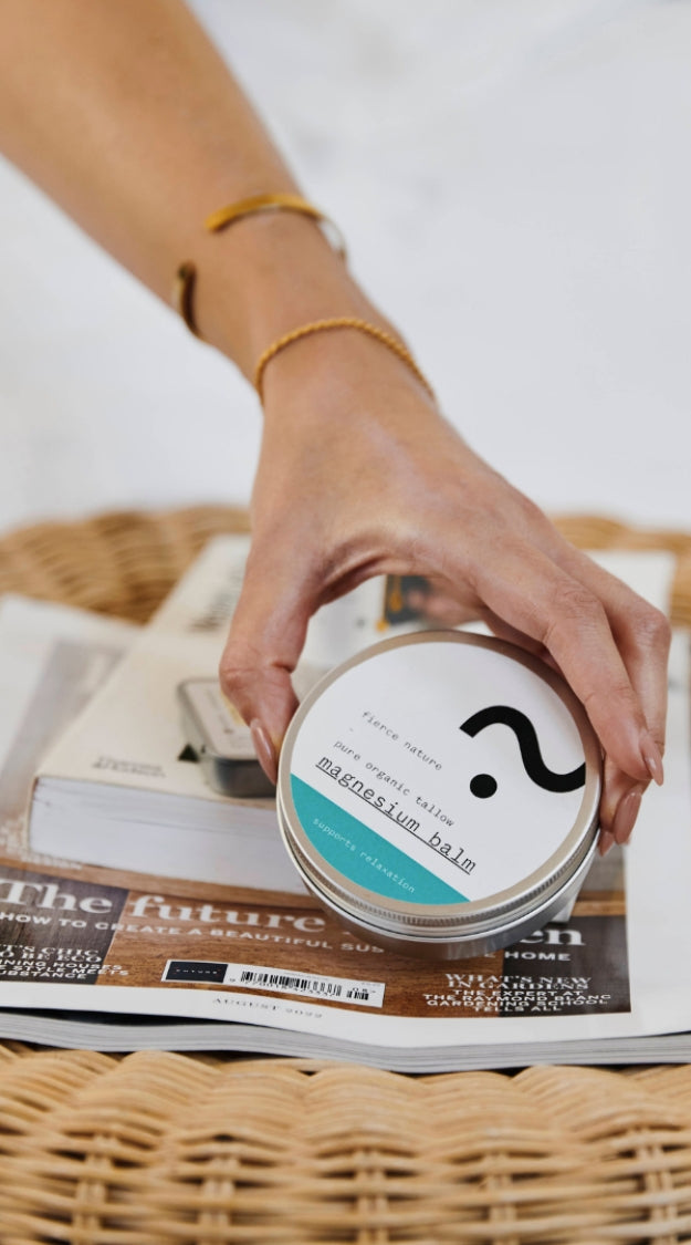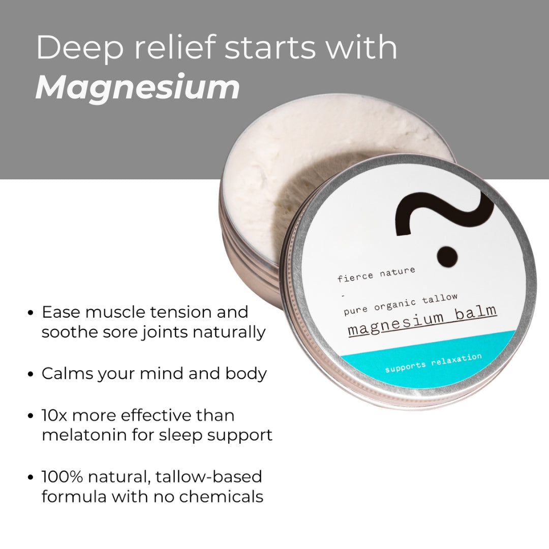 Our Magnesium Balm is designed to ease muscle tension, promote relaxation, and support better sleep. Infused with organic tallow and Dead Sea magnesium, it also provides deep skin nourishment.
